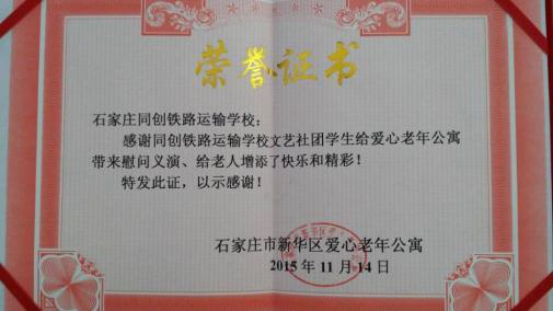 为呼吁当前社会和个人加入到关爱老年人的活动中去,石家庄同创铁路运输学校开展了2015冬日暖阳活动。
