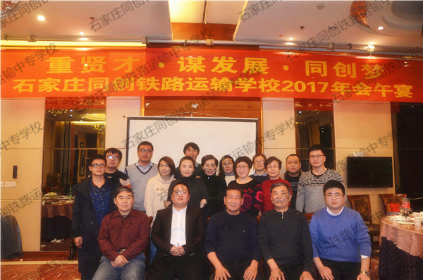 2018年1月14日中午12时,石家庄同创铁路运输中专学校2017年年会午宴在敬业大酒店隆重举行。石家庄同创铁路学校董事长师凡,校长朱喜顺及全体教职员工共83人欢聚一堂,共享盛宴。