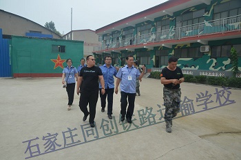 石家庄同创铁路学校董事长师凡、校长朱喜顺、副校长修兴民等学校领导在基地韩教官的带领下依次参观了基地学生食堂、学生宿舍、会议大厅、浴池等环境设施。校领导非常重视学生们的生活质量及食品安全问题。详细询问详细审查确保每一个同创学生的身体身心安全。希望每一位新生都能发扬“不怕苦、不怕累”的精神,都能在本次军训中收获成长、收获进步。