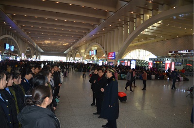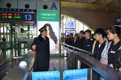 在这场实践课中同学们对客运设施设备的认识、车站旅客流线组织等的强理论性学习与现场中的客运工作组织不尽相同。日常的客运工作是一张由各种细节编织而成的大网,客运工作人员则是串联起这些细节的网中结点,以规章为纲,用细心和耐心完成旅客购票、进站、候车、乘降的一件件具体而细小的工作,为安全生产保驾护航。客运员直接与旅客接触,为其提供服务。除了组织正常的进站、检票、候车等过程外,怎样及时发现并处理隐患、怎样“处理”不守规则的旅客,以及发生列车晚点时怎样安抚旅客,更是每个客运员的必修课。这些情况的处理方法可能各有不同,但他们的共同内核是认真解释、耐心疏导。