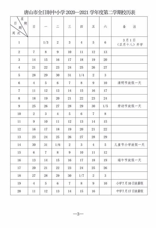 2021年唐山中小学确定寒假时间